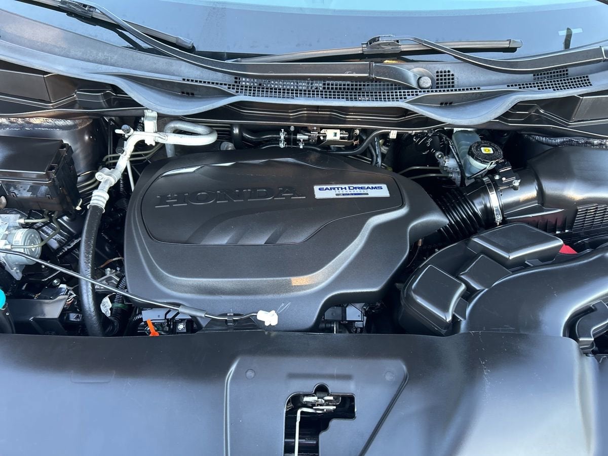 Well Equipped with: 3rd row seats: split-bench, 4-Wheel Disc Brakes, 4.33 Axle Ratio, 7 Speakers, ABS brakes, Air Conditioning, Alloy wheels, AM/FM radio: SiriusXM, Anti-whiplash front head restraints, Apple CarPlay/Android Auto, Auto High-beam Headlights, Auto-dimming Rear-View mirror, Automatic temperature control, Blind Spot Information (BSI) System warning, Brake assist, Bumpers: body-color, Delay-off headlights, Driver door bin, Driver vanity mirror, Driver's Seat Mounted Armrest, Dual front impact airbags, Dual front side impact airbags, Electronic Stability Control, Emergency communication system: HondaLink, Exterior Parking Camera Rear, Four wheel independent suspension, Front anti-roll bar, Front Bucket Seats, Front dual zone A/C, Front fog lights, Front reading lights, Fully automatic headlights, Garage door transmitter: HomeLink, Heated door mirrors, Heated Front Bucket Seats, Heated front seats, Illuminated entry, Knee airbag, Leather Seat Trim, Leather steering wheel, Low tire pressure warning, Memory seat, Occupant sensing airbag, Outside temperature display, Overhead airbag, Overhead console, Panic alarm, Passenger door bin, Passenger seat mounted armrest, Passenger vanity mirror, Power door mirrors, Power driver seat, Power Liftgate, Power moonroof, Power passenger seat, Power steering, Power windows, Radio data system, Radio: 160-Watt AM/FM/HD/SiriusXM Audio System, Rear air conditioning, Rear anti-roll bar, Rear reading lights, Rear seat center armrest, Rear window defroster, Rear window wiper, Reclining 3rd row seat, Remote keyless entry, Security system, Speed control, Speed-sensing steering, Speed-Sensitive Wipers, Split folding rear seat, Spoiler, Steering wheel mounted audio controls, Tachometer, Telescoping steering wheel, Tilt steering wheel, Traction control, Trip computer, Turn signal indicator mirrors, Variably intermittent wipers, and Wheels: 18 Silver-Painted Alloy.