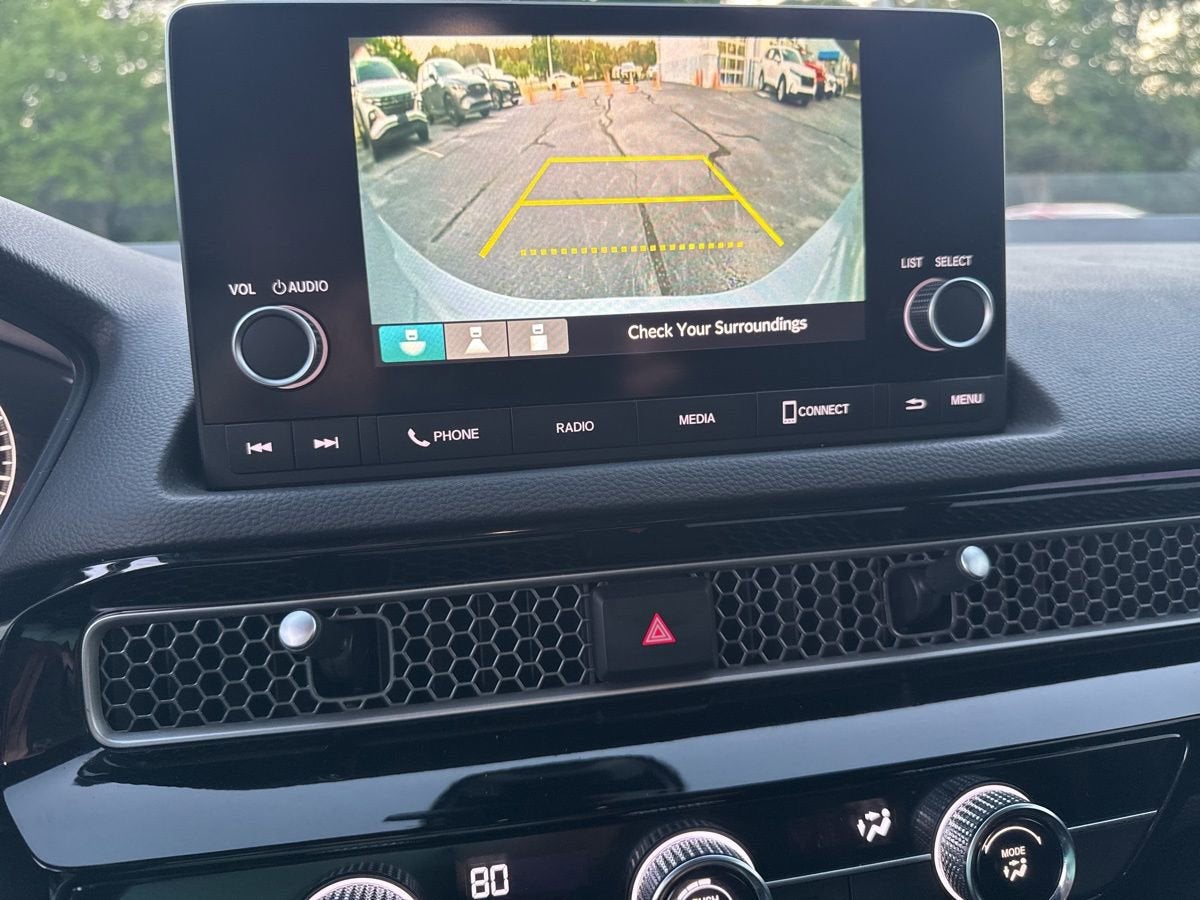 Well Equipped with: Cloth, 4-Wheel Disc Brakes, 8 Speakers, ABS brakes, Adaptive Cruise Control: Adaptive Cruise Control (ACC) with Low-Speed Follow, Air Conditioning, Alloy wheels, AM/FM radio, Apple CarPlay/Android Auto, Auto High-beam Headlights, Automatic temperature control, Brake assist, Bumpers: body-color, Cloth Seat Trim, Delay-off headlights, Driver door bin, Driver vanity mirror, Dual front impact airbags, Dual front side impact airbags, Electronic Stability Control, Emergency communication system: HondaLink, Exterior Parking Camera Rear, Forward collision: Collision Mitigation Braking System (CMBS) + FCW mitigation, Four wheel independent suspension, Front anti-roll bar, Front Bucket Seats, Front Center Armrest, Front reading lights, Fully automatic headlights, Illuminated entry, Knee airbag, Leather Shift Knob, Leather steering wheel, Low tire pressure warning, Occupant sensing airbag, Outside temperature display, Overhead airbag, Panic alarm, Passenger door bin, Passenger vanity mirror, Power door mirrors, Power steering, Power windows, Radio data system, Radio: 180-Watt AM/FM Audio System, Rear anti-roll bar, Rear side impact airbag, Rear window defroster, Remote keyless entry, Security system, Speed control, Speed-sensing steering, Steering wheel mounted audio controls, Tachometer, Telescoping steering wheel, Tilt steering wheel, Traction control, Trip computer, and Wheels: 18 Gloss Black Alloy.