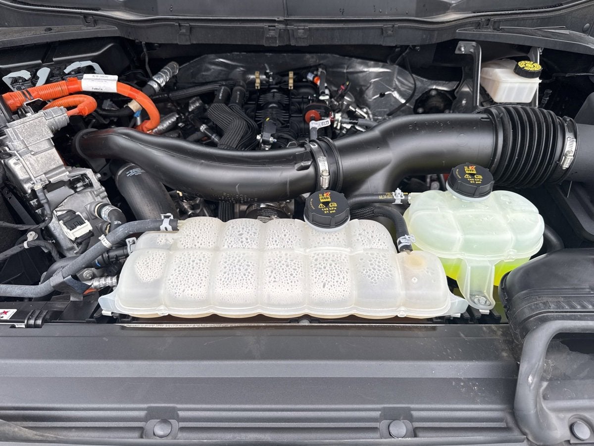 Well Equipped with: Equipment Group 301A Standard, Mobile Office Package (Cloth 40/Console/40 Front Seats, Console Worksurface, and Partitioned Lockable Rear Storage), 3.5L PowerBoost Full-Hybrid V6, 4WD, 3.31 Axle Ratio, 4-Wheel Disc Brakes, 6 Speakers, ABS brakes, Air Conditioning, Alloy wheels, AM/FM radio: SiriusXM with 360L, Auto High-beam Headlights, Auto-dimming Rear-View mirror, Automatic temperature control, Brake assist, Bumpers: chrome, Chrome wheels, Cloth 40/20/40 Front Seat, Compass, Delay-off headlights, Driver door bin, Driver vanity mirror, Dual front impact airbags, Dual front side impact airbags, Electronic Locking w/3.73 Axle Ratio, Electronic Stability Control, Emergency communication system: SYNC 4 911 Assist, Front anti-roll bar, Front Center Armrest w/Storage, Front dual zone A/C, Front fog lights, Front License Plate Bracket, Front reading lights, Front wheel independent suspension, Fully automatic headlights, Heated door mirrors, Illuminated entry, Low tire pressure warning, Navigation system: Connected Navigation, Occupant sensing airbag, Outside temperature display, Overhead airbag, Overhead console, Panic alarm, Passenger door bin, Passenger vanity mirror, Power door mirrors, Power driver seat, Power steering, Power windows, Radio data system, Radio: AM/FM SiriusXM w/360L, Rear reading lights, Rear step bumper, Rear window defroster, Remote keyless entry, Security system, Speed control, Split folding rear seat, Steering wheel mounted audio controls, SYNC 4 w/Enhanced Voice Recognition, Tachometer, Telescoping steering wheel, Tilt steering wheel, Traction control, Trip computer, Variably intermittent wipers, Voltmeter, and Wheels: 18 Chrome-Like PVD.