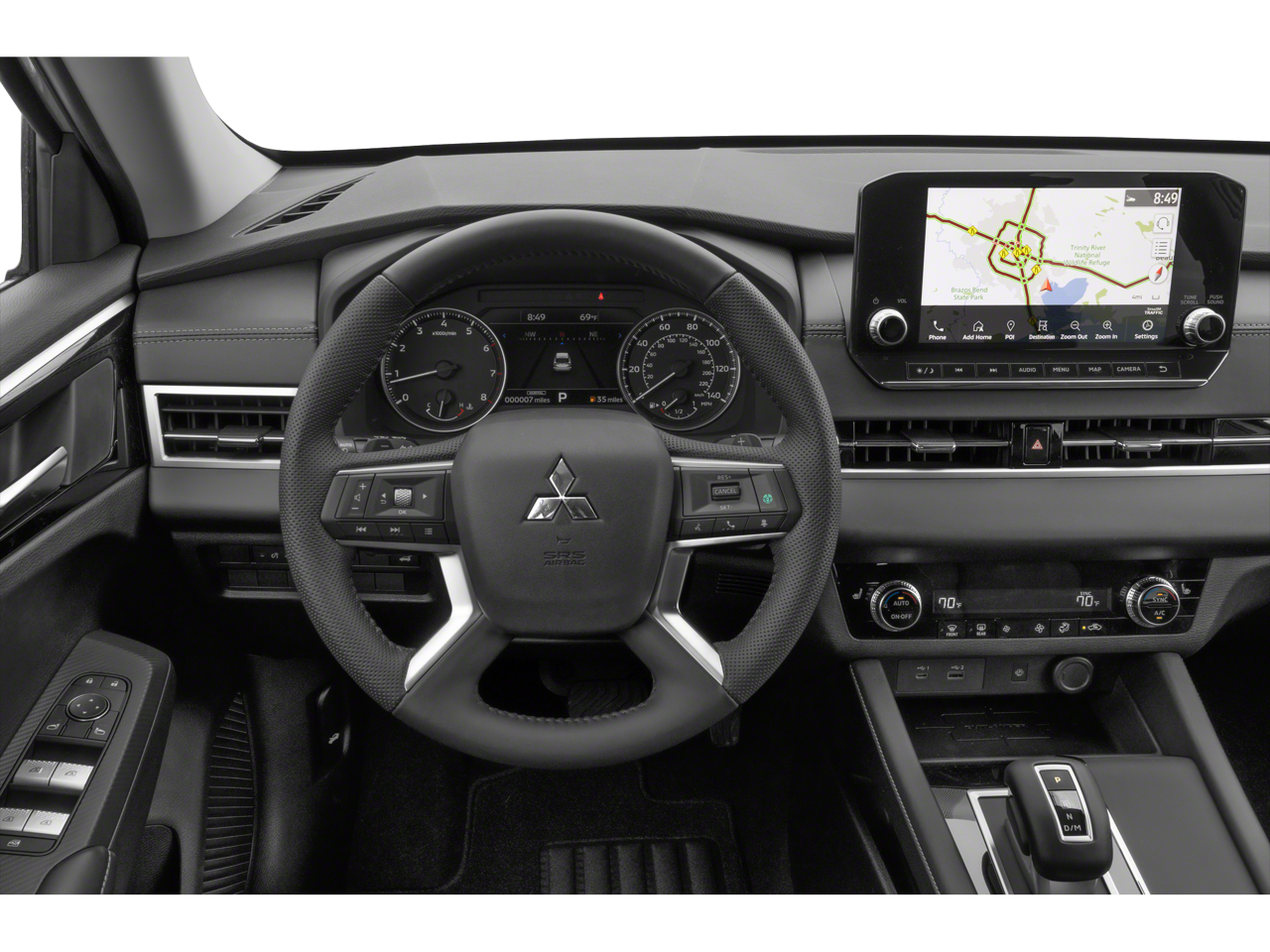 Well Equipped with: 4WD, 3rd row seats: split-bench, 4-Wheel Disc Brakes, 5.694 Axle Ratio, 6 Speakers, ABS brakes, Air Conditioning, Alloy wheels, AM/FM radio: SiriusXM, Android Auto & Apple CarPlay, Auto High-beam Headlights, Automatic temperature control, Brake assist, Bumpers: body-color, Driver door bin, Driver vanity mirror, Dual front impact airbags, Dual front side impact airbags, Electronic Stability Control, Emergency communication system: Mitsubishi Connect w/ 24-month trial, Exterior Parking Camera Rear, Four wheel independent suspension, Front anti-roll bar, Front Bucket Seats, Front Center Armrest w/Storage, Front dual zone A/C, Front fog lights, Front reading lights, Fully automatic headlights, Headlight cleaning, Heated door mirrors, Heated Front Bucket Seats, Heated front seats, Illuminated entry, Knee airbag, Leather Shift Knob, Leather steering wheel, Low tire pressure warning, Navigation System, Occupant sensing airbag, Outside temperature display, Overhead airbag, Overhead console, Panic alarm, Passenger door bin, Passenger vanity mirror, Power door mirrors, Power driver seat, Power Liftgate, Power steering, Power windows, Radio data system, Radio: AM/FM 9.0 Navigation w/Smartphone Link, Rain sensing wipers, Rear anti-roll bar, Rear seat center armrest, Rear side impact airbag, Rear window defroster, Rear window wiper, Reclining 3rd row seat, Remote keyless entry, Security system, Speed control, Speed-Sensitive Wipers, Split folding rear seat, Spoiler, Steering wheel mounted audio controls, Synthetic Leather Seat Trim, Tachometer, Telescoping steering wheel, Tilt steering wheel, Traction control, Trip computer, Turn signal indicator mirrors, and Variably intermittent wipers.
